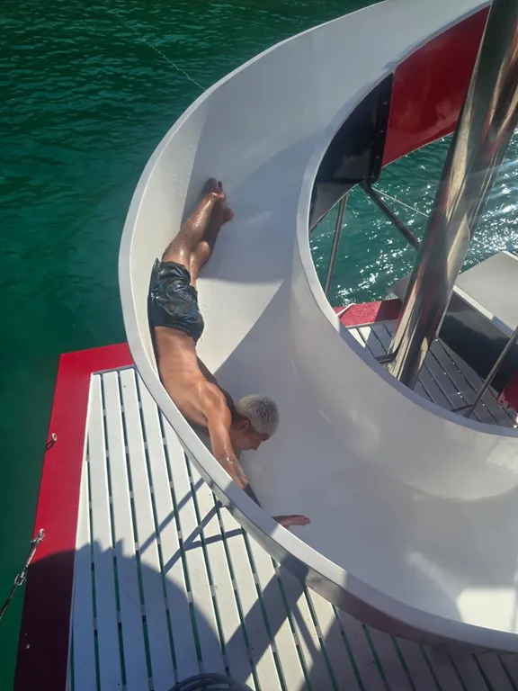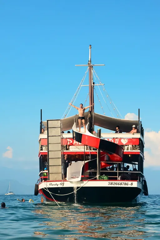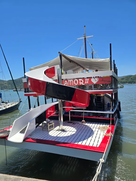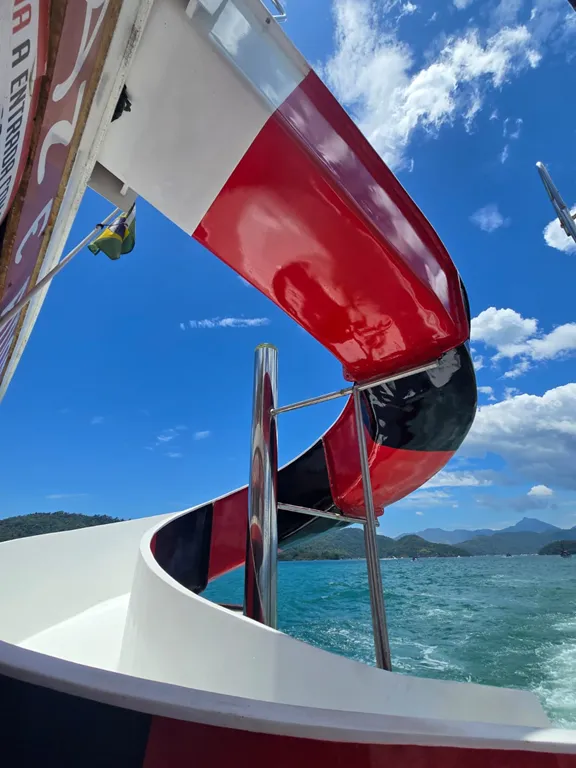 O diferencial da Escuna Paz e Amor II é o seu Toboágua localizado na popa da embarcação, proporcionando uma experiência inesquecível para quem está realizando este passeio inesquecível pelas deslumbrantes praias e ilhas da baía de Paraty.