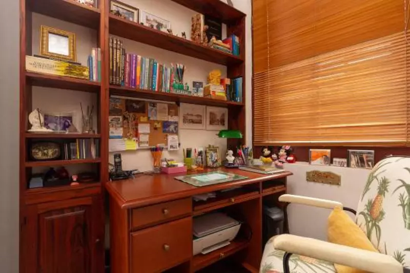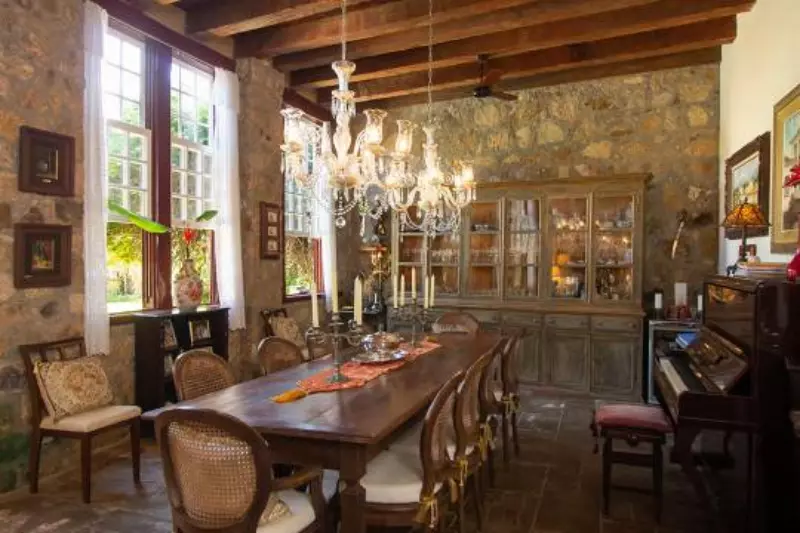 Composta por 3 amplas suítes, armários embutidos em madeira maciça, ar condicionado Split em todos os quartos e suítes, 01quarto, 02 banheiros, 1 lavabo com ducha, 1 banheiro de serviço, sala de estar, sala de leitura, sala de jantar, atelier para costura ou artesanato, varanda com 150m², 1 escritótio, 1 academia de ginástica, ampla cozinha com copa, lavanderia/ garagem, oficina para trabalho e manutenção, área para funcionários, sauna à vapor, piscina, jardim e lareira.