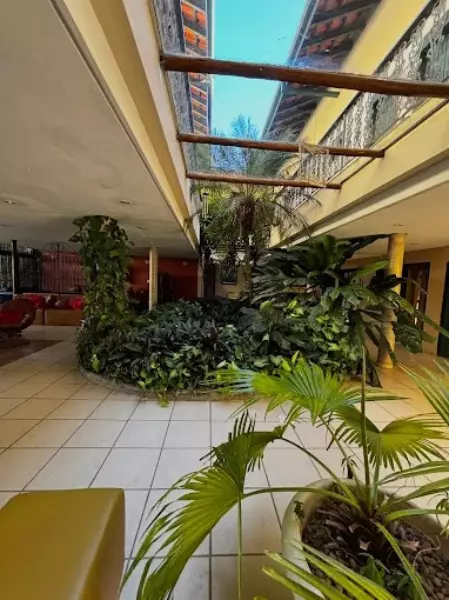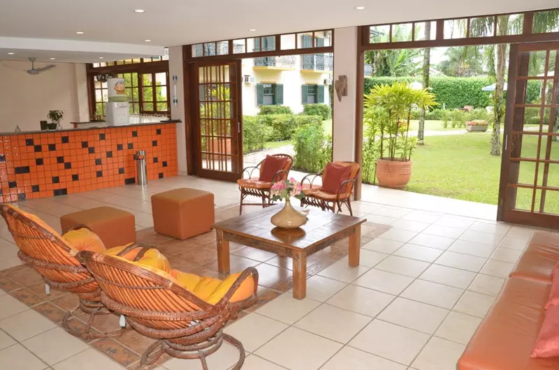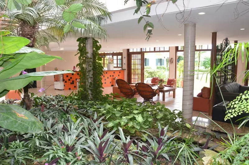 Contando ainda com um exuberante jardim tropical com fonte e peixes e em sua área externa ainda possui 2 banheiros.