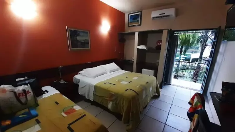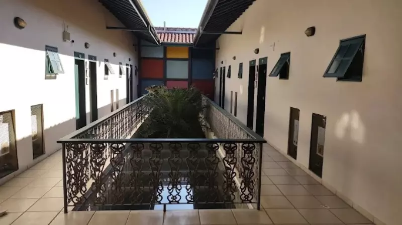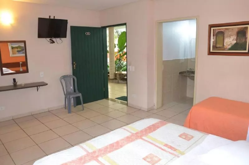 Salão de Café, estacionamento, recepção e 27 lindas suítes Equipados com frigobar, cama queen size, ar condicionado, ventilador de teto e ramal telefônico.