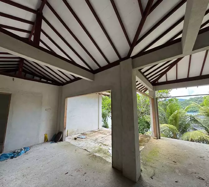 Quanto à casa, recém-construída (em fase de acabamentos), vale destacar que foi projetada em harmonia com a paisagem, permitindo, assim, total integração com o ambiente natural.